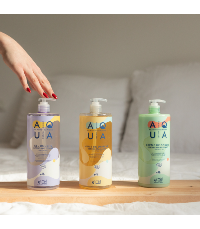 Le Gel Douche Dermo-Nettoyant Bio d’Aqua Soins est un produit certifié bio, spécialement conçu pour les peaux sensibles, sèches ou à tendance atopique. Ce gel doux et hypoallergénique offre une expérience de douche nettoyante et apaisante, en utilisant des ingrédients naturels riches en bienfaits pour la peau.