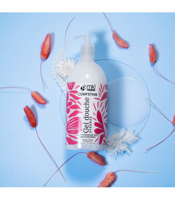 Offrez à votre peau un soin ultra-doux et nourrissant avec le Gel Douche Surgras MKL au Lait d’Ânesse, un nettoyant 3 en 1 adapté au corps, au visage et aux cheveux. Enrichi en lait d’ânesse bio – reconnu pour ses propriétés hydratantes, adoucissantes et réparatrices – il protège la barrière naturelle de la peau tout en la laissant souple, lumineuse et délicatement parfumée.