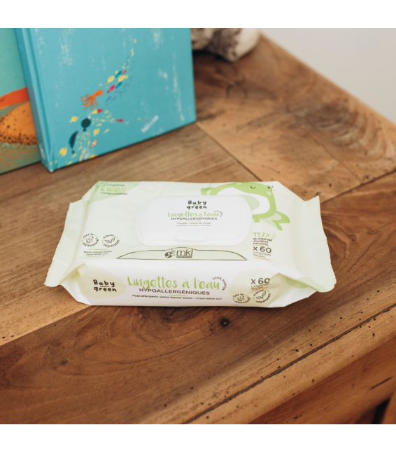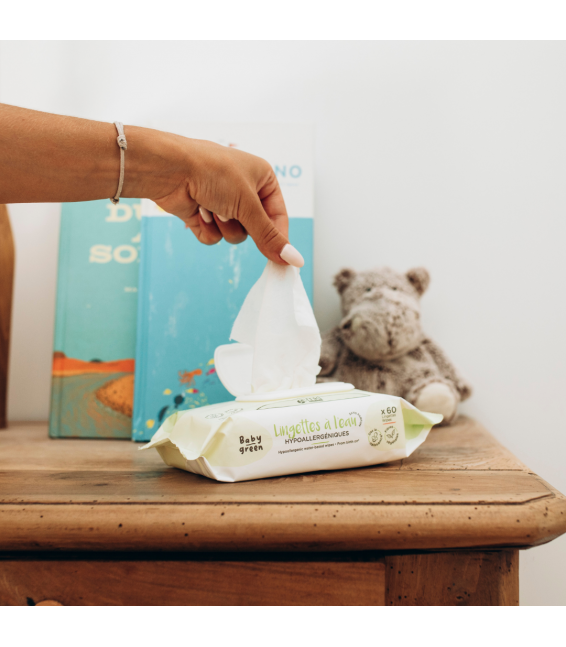 Les Lingettes à Eau Bio de la marque Baby Green sont des lingettes 100% compostables, spécialement conçues pour les peaux sensibles et délicates des bébés. Ces lingettes hypoallergéniques sont idéales pour le nettoyage quotidien du visage, du corps et du siège des nourrissons, en toute douceur et sécurité.
