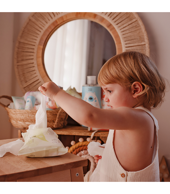 • Facilité d’utilisation : Une simple lingette suffit pour nettoyer rapidement et efficacement le visage, le corps et le siège du bébé.